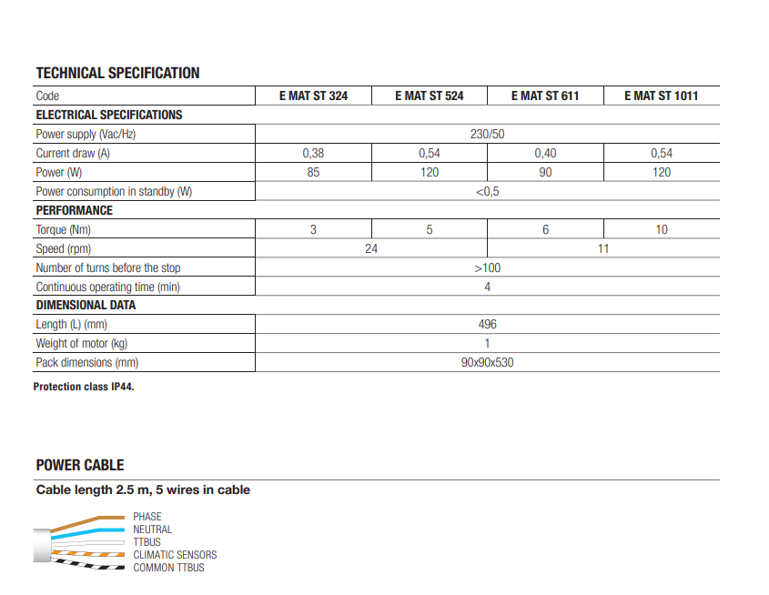 E MAT ST 524 Elektronik limit siviç, dahili alıcı, TTBus teknolojisi.5 Nm, 24 rpm